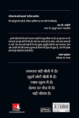 जिंदगी के बहुत सारे फलसफो को अपने में समेटे यह किताब मन की शांति पाने, परिवार में प्यार बढ़ाने और तरक्की करने के तरीके बताती है। इसमें रोजमर्रा की जिदगी के उदाहरण देते हुए खुशी, सफलता, ध्यान, ईश्र्वर जैसे विषयों के बारे में एक नई और सुलझी हुई सोच जाहिर की गई है।